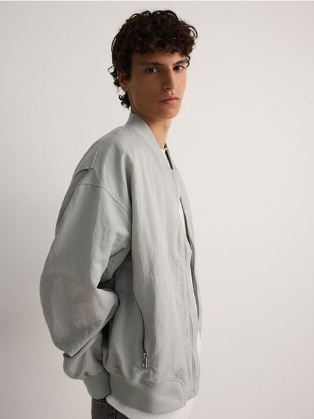 Kurtka typu bomber, wykonana z gładkiego materiału.