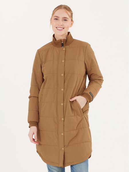 Brązowa Pikowana Kurtka z Materiałowym Kapturem i Kieszeniami Ravalynne