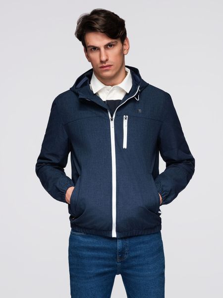 Lekka sportowa kurtka męska z polarową podszewką – granatowa V2