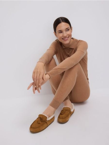 Legginsy o dopasowanym kroju, wykonane z miękkiej, wełnianej dzianiny.