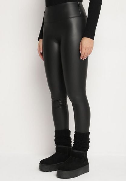 Czarne Legginsy z Ekoskóry z Wysokim Stanem i Polarem Labira