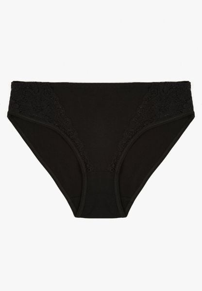 Czarne Majtki Figi z Bawełny z Ozdobną Koronką Ersenlia