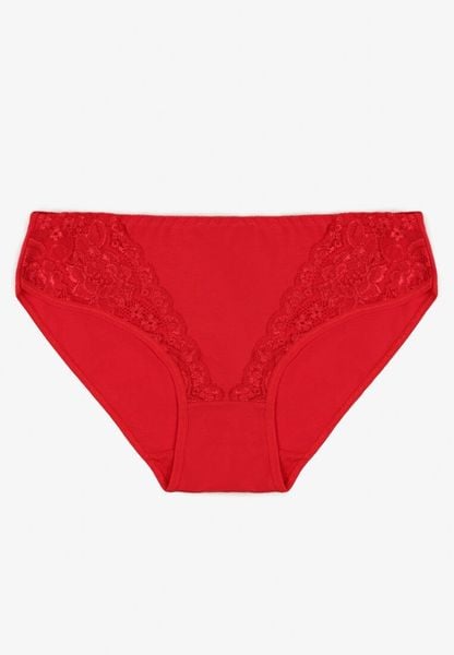Czerwone Bawełniane Majtki Figi Zdobione Koronką Erpolia