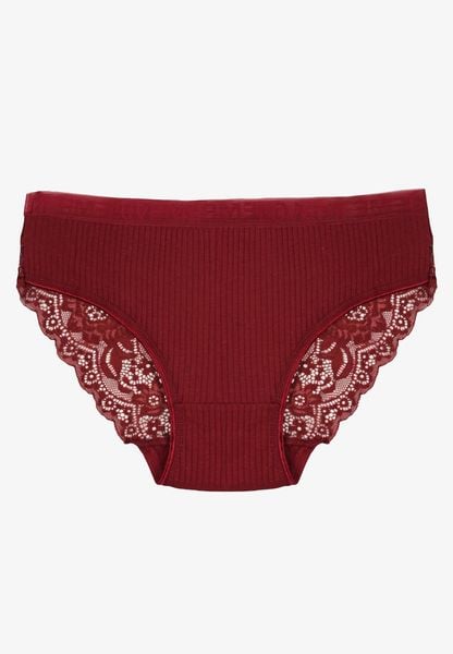 Bordowe Prążkowane Majtki Figi z Bawełny Zdobione Koronką Erwelia