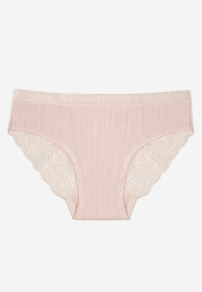 Jasnoróżowe Bawełniane Majtki Figi z Prążkowanej Tkaniny z Koronką Erqelia