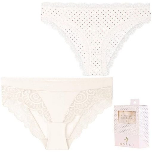 Białe Figi Damskie Moraj 2 Pary W Ozdobnym Pudełku