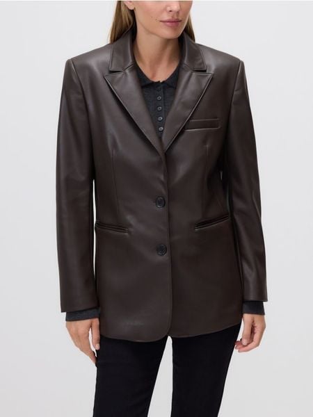 Marynarka o prostym kroju, wykonana z imitacji skóry.
