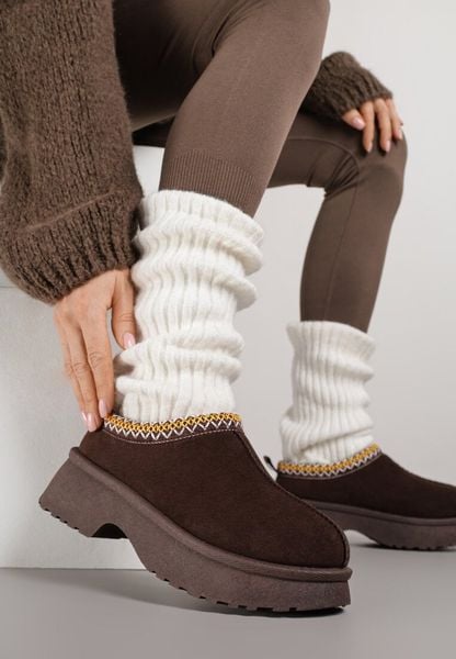 Brązowe Śniegowce z Imitacji Zamszu na Grubej Podeszwie z Niską Cholewką Ennitha