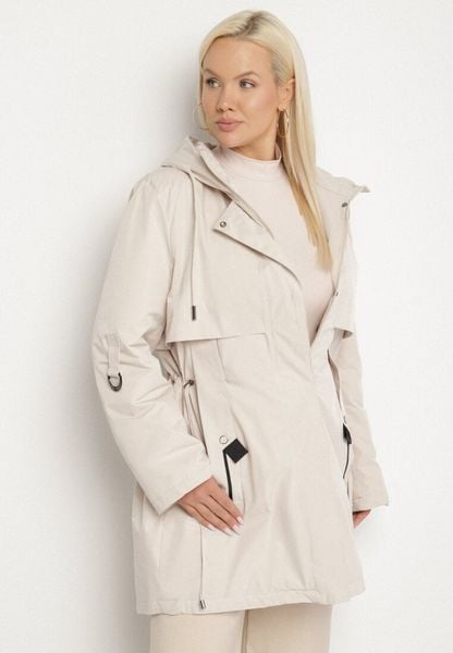Jasnobeżowa Kurtka Typu Parka z Kapturem i Podpinanymi Rękawami Falunea