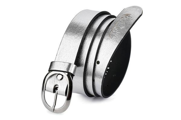 Beltimore skórzany damski pasek do spodni 3 cm srebrny U48 : Kolory – szary, srebrny, Rozmiar pasków – r.105-120 cm