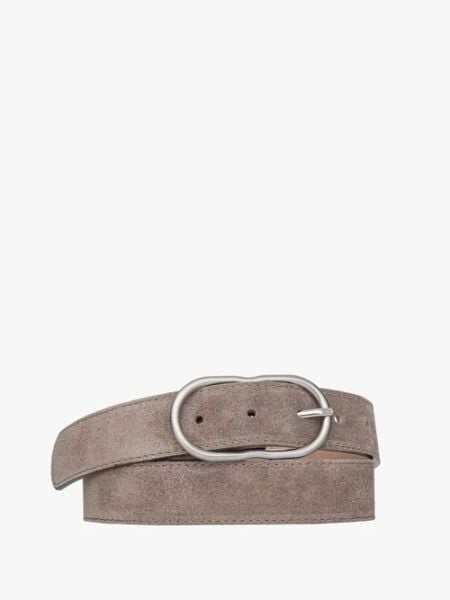 Beżowy welurowy pasek damski ze srebrną klamrą
