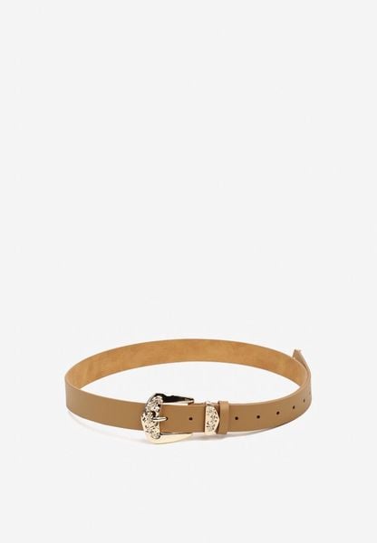 Beżowy Pasek z Ozdobną Klamrą i Wytłocznym Wzorem Bitanea
