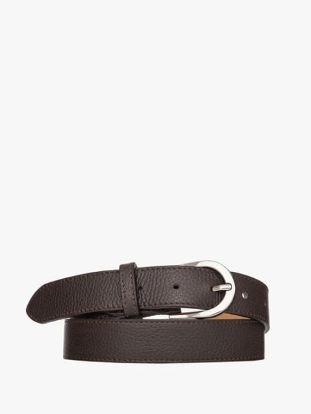 Ciemnobrązowy pasek damski ze srebrną klamrą