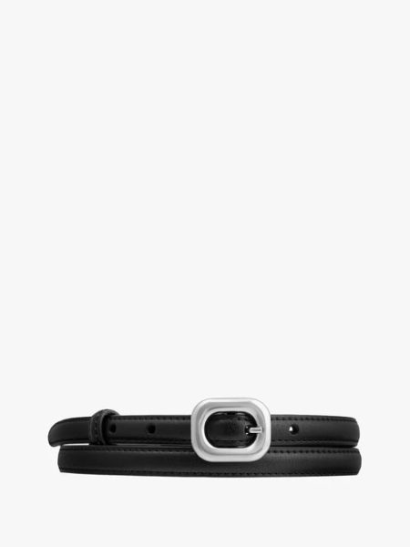 Czarny pasek damski ze skóry licowej ze srebrną klamrą