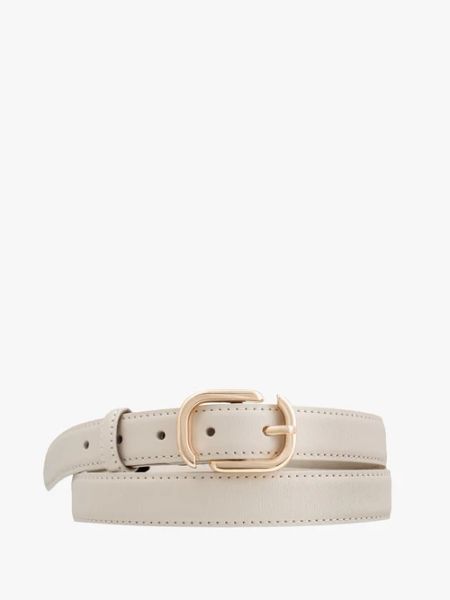 Beżowy pasek damski ze skóry licowej ze złotą klamrą