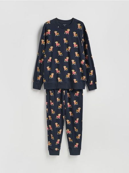Dwuczęściowa piżama ze świątecznym motywem – granatowy