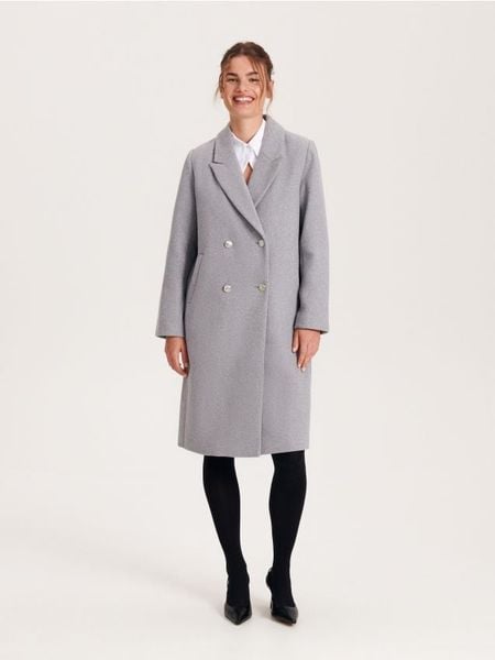Dwurzędowy płaszcz z dodatkiem wełny – szary