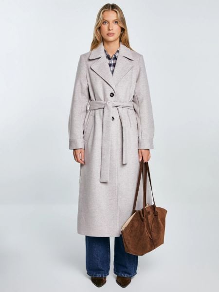Płaszcz damski z wełną z paskiem beżowy Ksenia 801