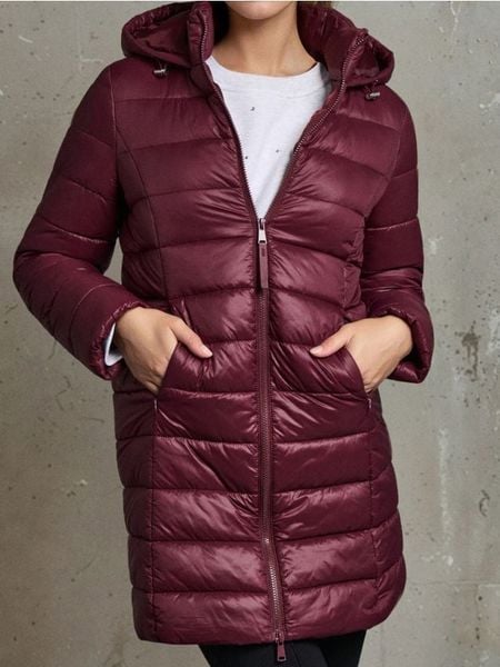Sinsay – Pikowany płaszcz z kapturem – bordowy –