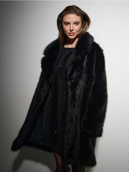 Sinsay – Płaszcz z futerkiem ocieplanym – czarny –
