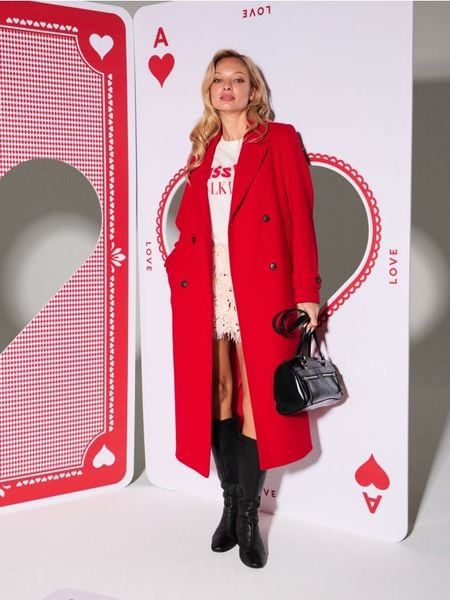 Długi płaszcz z ozdobnymi guzikami – czerwony