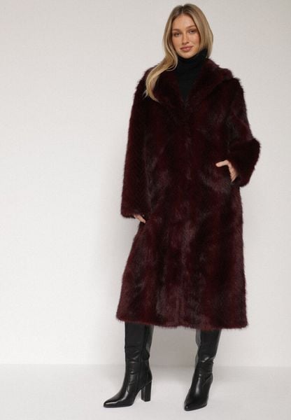 Bordowy Jednorzędowy Płaszcz Futerko o Klasycznym Kroju Yrelsha