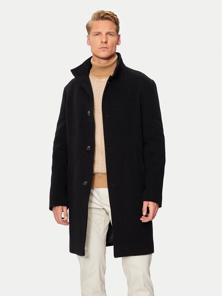Tommy Hilfiger Płaszcz wełniany MW0MW37956 Czarny Regular Fit