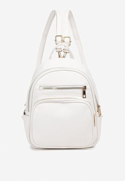 Biały Plecak na Suwak Wykończony Regulowanymi Odpinanymi Paskami Nelda
