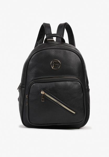Czarny Plecak Zdobiony Metaliczną Aplikacją i Asymetrycznym Suwakiem Milasea