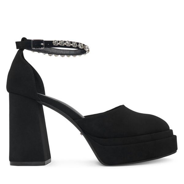 Czarne Półbuty na Słupku z Niską Platformą w Stylu Mokasynów z Imitacji Zamszu Aricandia