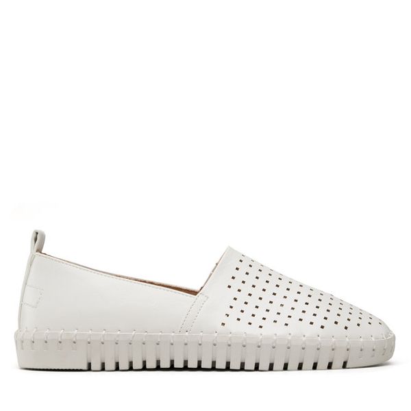Białe Półbuty w Stylu Loafersów z Perforacją Drobnymi Cyrkoniami i Klamrą Keryth