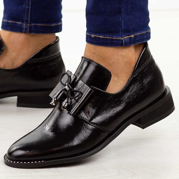 Czarne lakierowane skórzane Polskie półbuty damskie Deoni D055