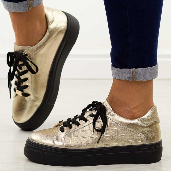 Złote skórzane półbuty damskie Filippo Dp6850/25