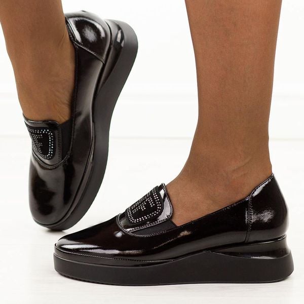 Czarne lakierowane skórzane półbuty damskie Filippo Dp7396/25