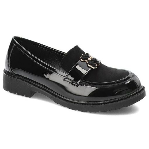 Czarne Półbuty S.Barski Wygodne Obuwie Damskie Z Broszką
