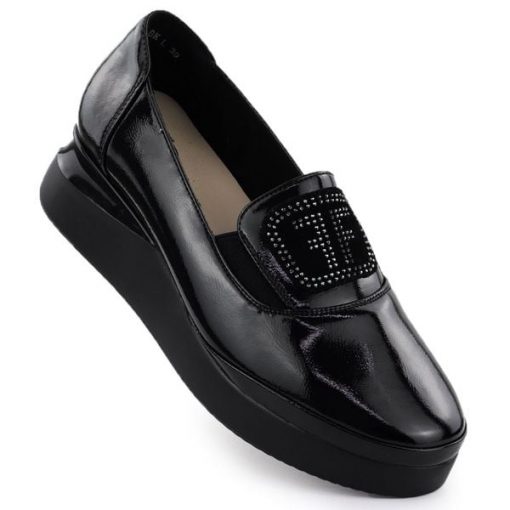 Skórzane półbuty damskie lakierowane czarne Filippo DP7396