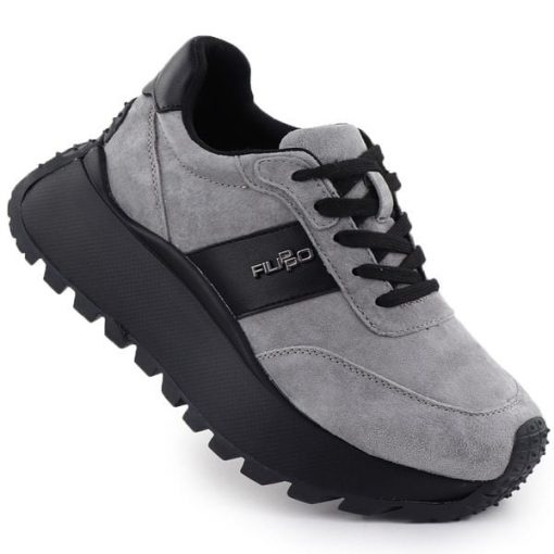 Skórzane półbuty damskie sneakersy na platformie szare Filippo DP6785