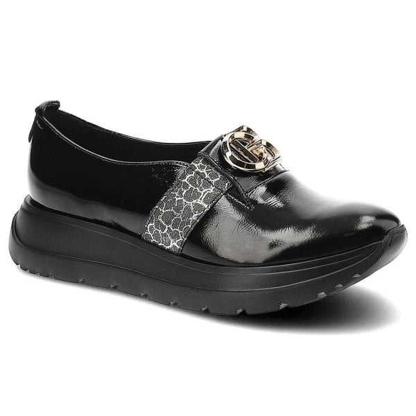 Półbuty damskie Lamanti, lakierowana cholewka o gładkim wykończeniu dekoracyjny pasek z metalową ozdobą, czarne, 902