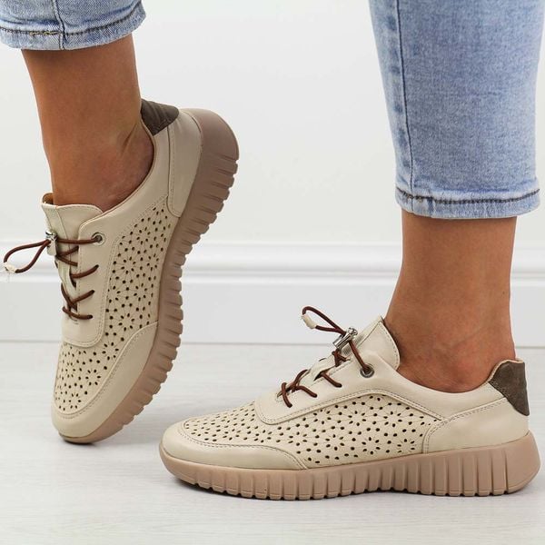 Beżowe Gr ażurowe półbuty damskie M.Daszyński 2270-2