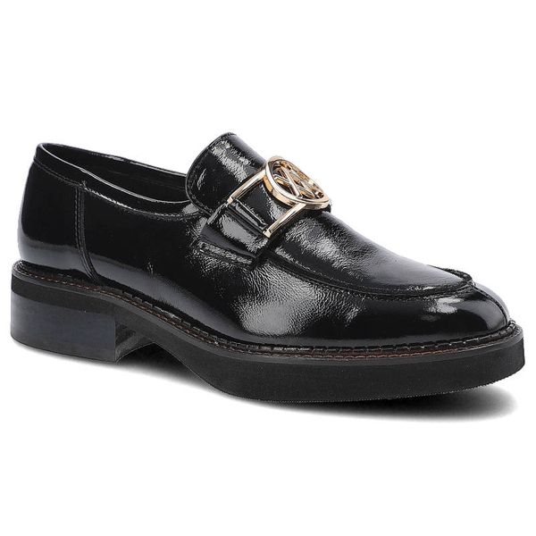 Półbuty damskie Karino, naturalna skóra licowa o lakierowanym wykończeniu z paskiem na podbiciu z metalową aplikacją oraz solidną podeszwą, czarne, 3