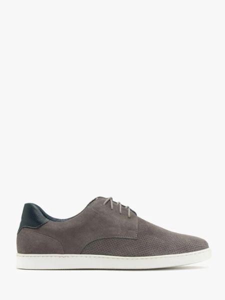 Szary półbut męski z linii RKO.Model wykonany z weluru z granatową wstawką ze skóry licowej.Podszewka i wyściółka skórzana.