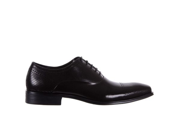 Czarne półbuty marki Bayla wykonane są z połyskującej, częściowo perforowanej skóry licowej. Cholewki skrojone w stylu OXFORD. Sznurowane z przodu. Posiadają skórzana wkładkę i wyściółkę oraz antypoślizgową podeszwę.Dzięki eleganckiemu wykończeniu oraz użyciu najlepszej jakości materiałów buty będą idealnym uzupełnieniem codziennego wyglądu.Długość wkładki mierzona dla rozmiaru 42 – 29 cm