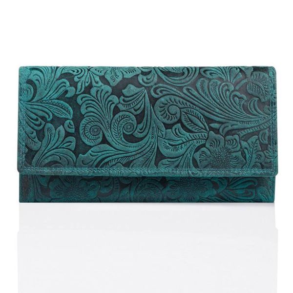 Paolo Peruzzi Portfel damski skórzany w stylu vintage duży zielony T-109-HGR