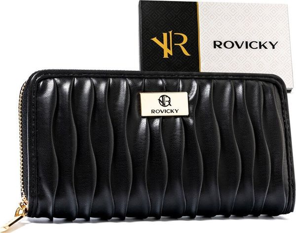 Rovicky Duży portfel damski ze skóry ekologicznej w czarnym kolorze na zamek – Rovicky NoSize
