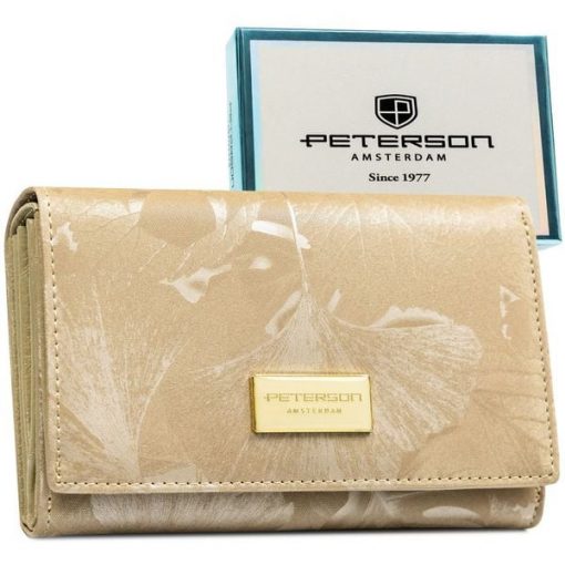 Beżowy portfel damski ze skóry naturalnej i ekologicznej zamykany zatrzaskiem Peterson PTN PS122-MLF