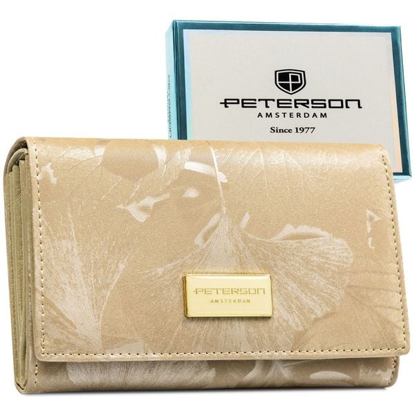 Beżowy portfel damski ze skóry naturalnej i ekologicznej z systemem RFID Peterson PTN PS445-MLF