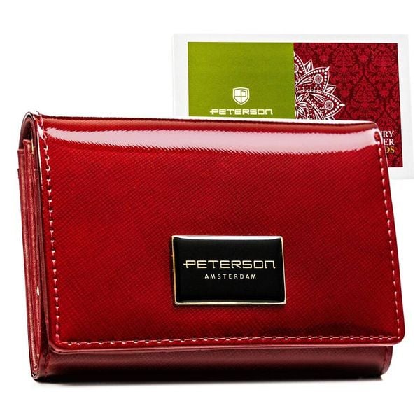 Skórzany lakierowany portfel damski na zatrzask w czerwonym kolorze PTN PH30-1-SH Peterson