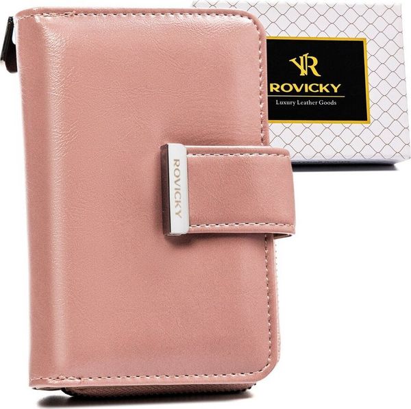 Portfel damski z jednolitej skóry ekologicznej, zapinany zatrzaskiem - Rovicky
