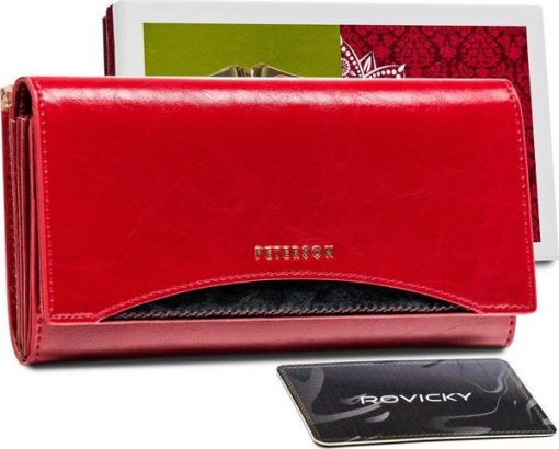 Peterson PETERSON skórzany portfel damski BC603 ochrona RFID czerwony lakier BC603