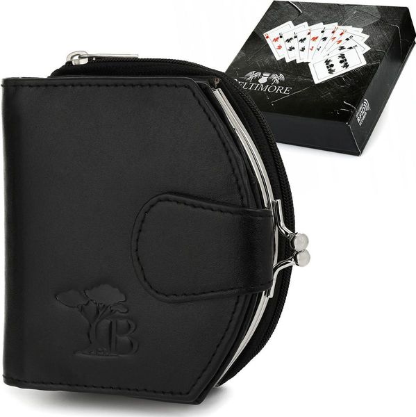 Portfel skórzany damski RFiD skóra na karty klasyk czarny Beltimore A01 NoSize
